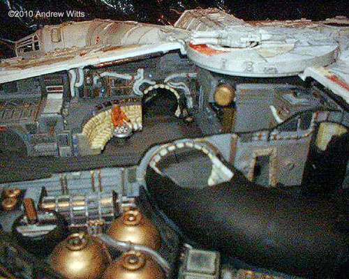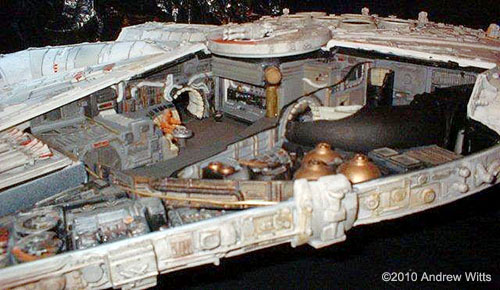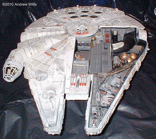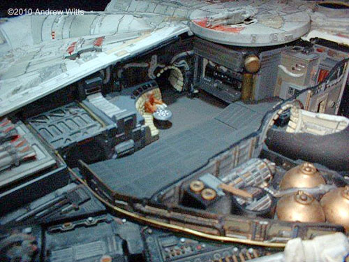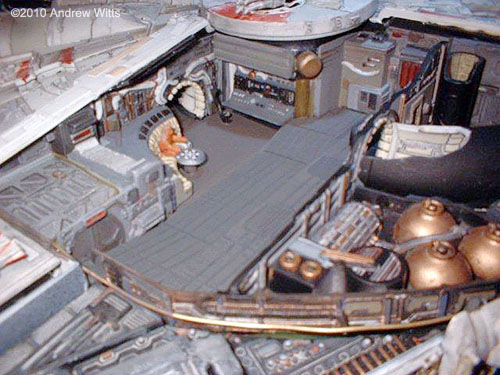 I thought I would send along these pics of the AMT cutaway Millennium Falcon I finished a while ago. I first made the sides thinner as I made this model in 1980 and was always unhappy with the detail. Due to lack of money, I had to make do with what I had hanging around the house: styrene sheets, brass wire and a few bits of kits I had hanging around. Plus LED sets - there are a few fibre optics here and there but it was all quite a squeeze. Quite a headache as everything inside the Falcon from then on does not fit. So I created steps in the main hold and the tunnel that goes to the cockpit is now on angle slightly. As I said there are a few fibre optics, but these are difficult to see with the old camera I have as the flash is to bright. I added a scratchbuilt cockpit and gun turret with fibre optics. I used the Han and Chewie from the revell Falcon kit I have which I think works a little better than the ones in this kit. I made a crude wire frame with the landing gear attached, with a few tea lights for a few of the photos, as the finished model is in flight (hanging from the ceiling normally). Image: Front Right Image: Gun Tub Image: Tub & Engine Deck Image: Cockpit Image: Cockpit Lights Image: 'Nother View Image: Right Image: Cockpit Top Image: Gunbay Image: Right Side Image: Left Image: Rear Image: Right Rear Image: Right Image: Let the Wookie win Image: More Interior Image: Rec Area Image: Rec Area Right Image: Front Image: Batteries |